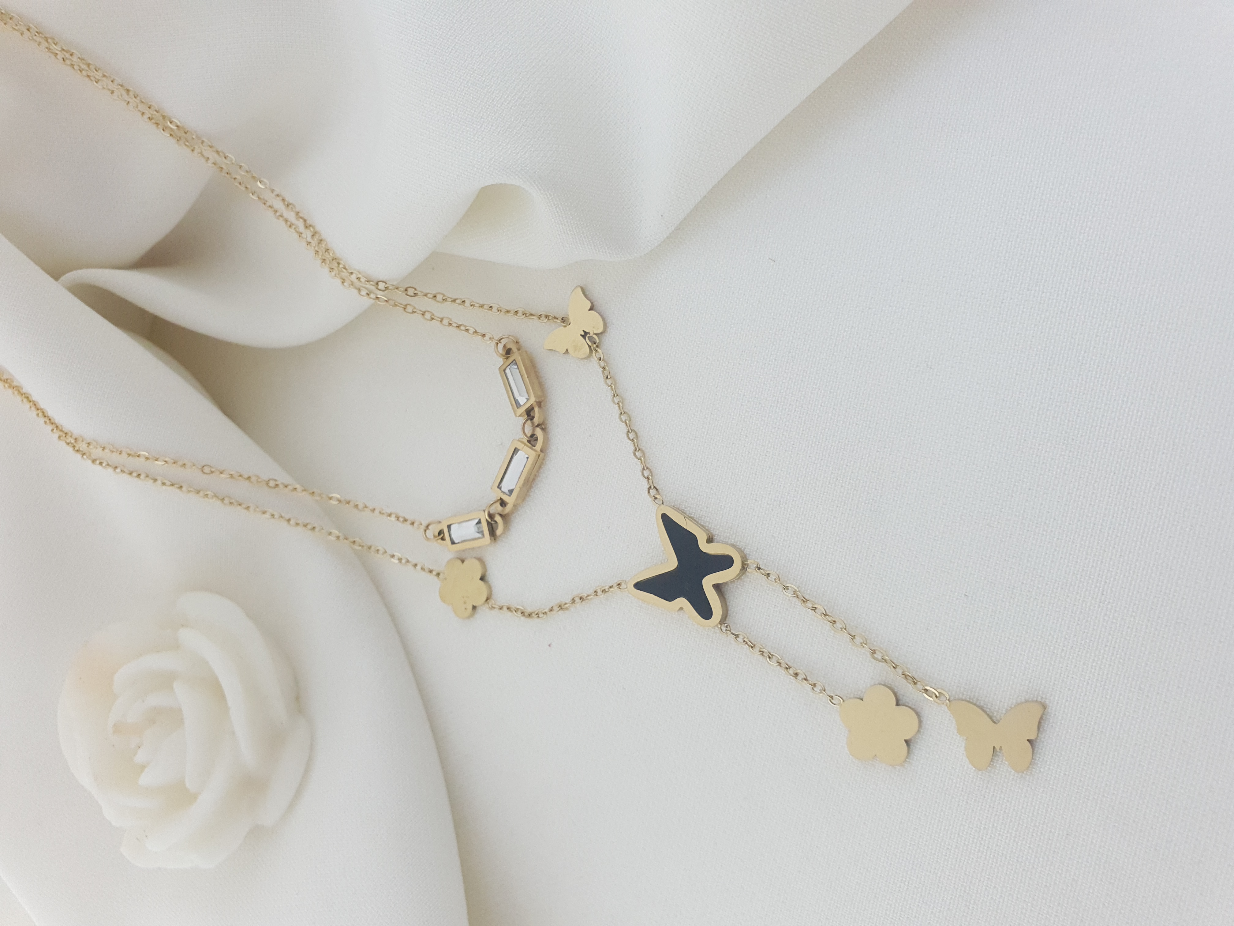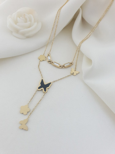 گردنبند دخترانه طرح پروانه طلایی نگینی آویزدار 74936
