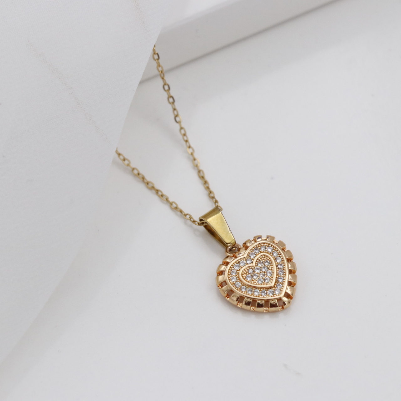 گردنبند زنانه نقره ای استیل فول نگین قلبی طلایی 73949