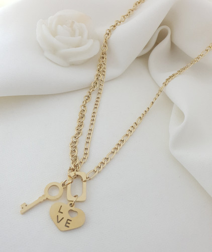 گردنبند زنانه طلایی لاو قفل و کلید ۷۲۶۰۶