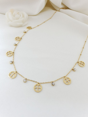 گردنبند زنانه طلایی استیل فول نگین 73947