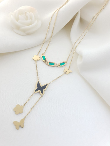 گردنبند پروانهای نگین سبز آویزدار طلایی ۷۲۵۹۱
