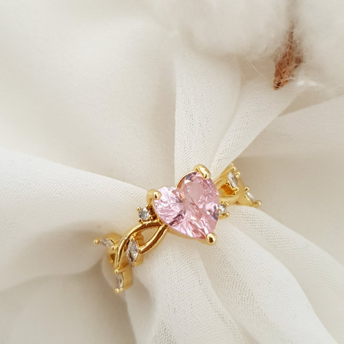 انگشتر طلایی قلبی نگین صورتی ۷۵۱۶۰
