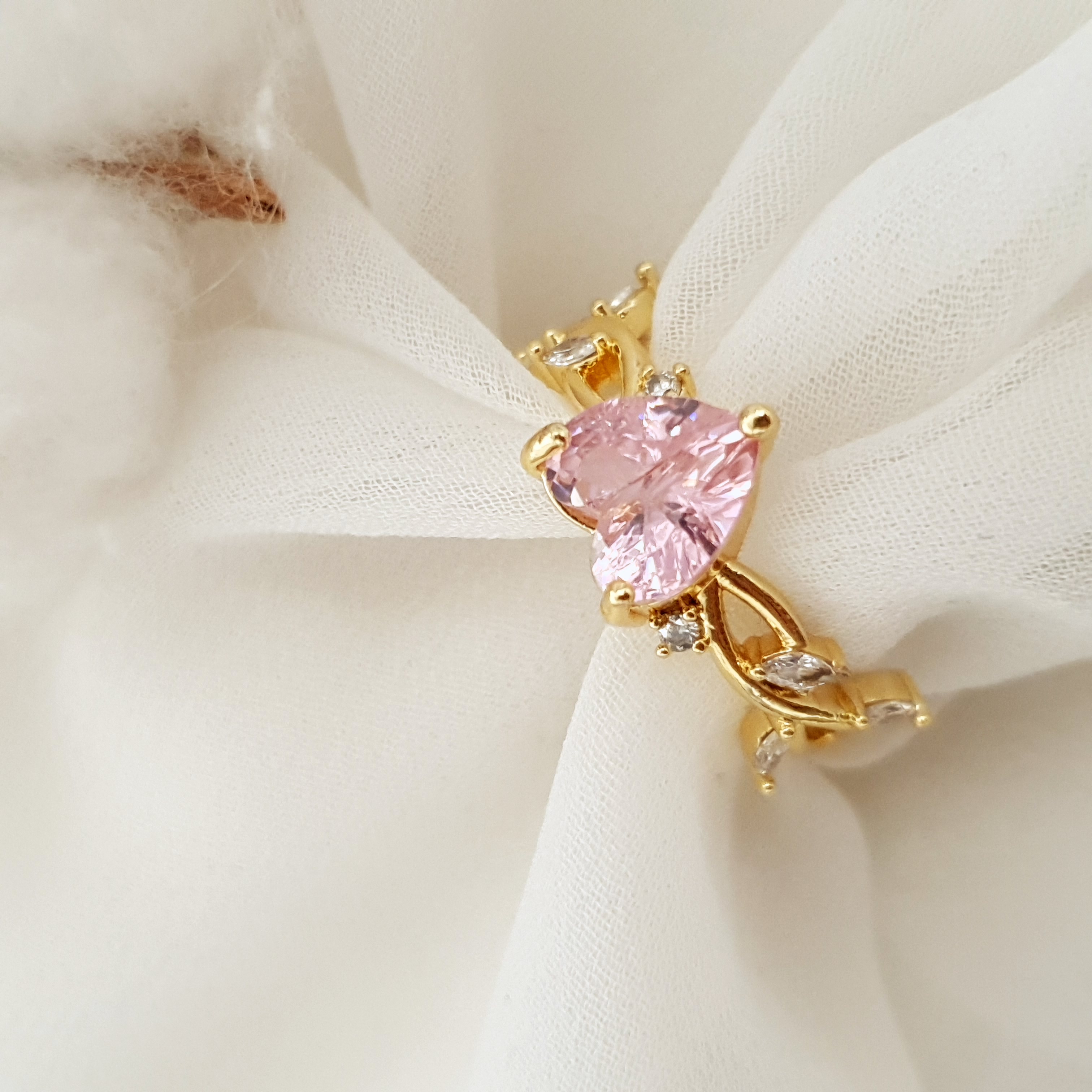 انگشتر طلایی قلبی نگین صورتی ۷۵۱۶۰