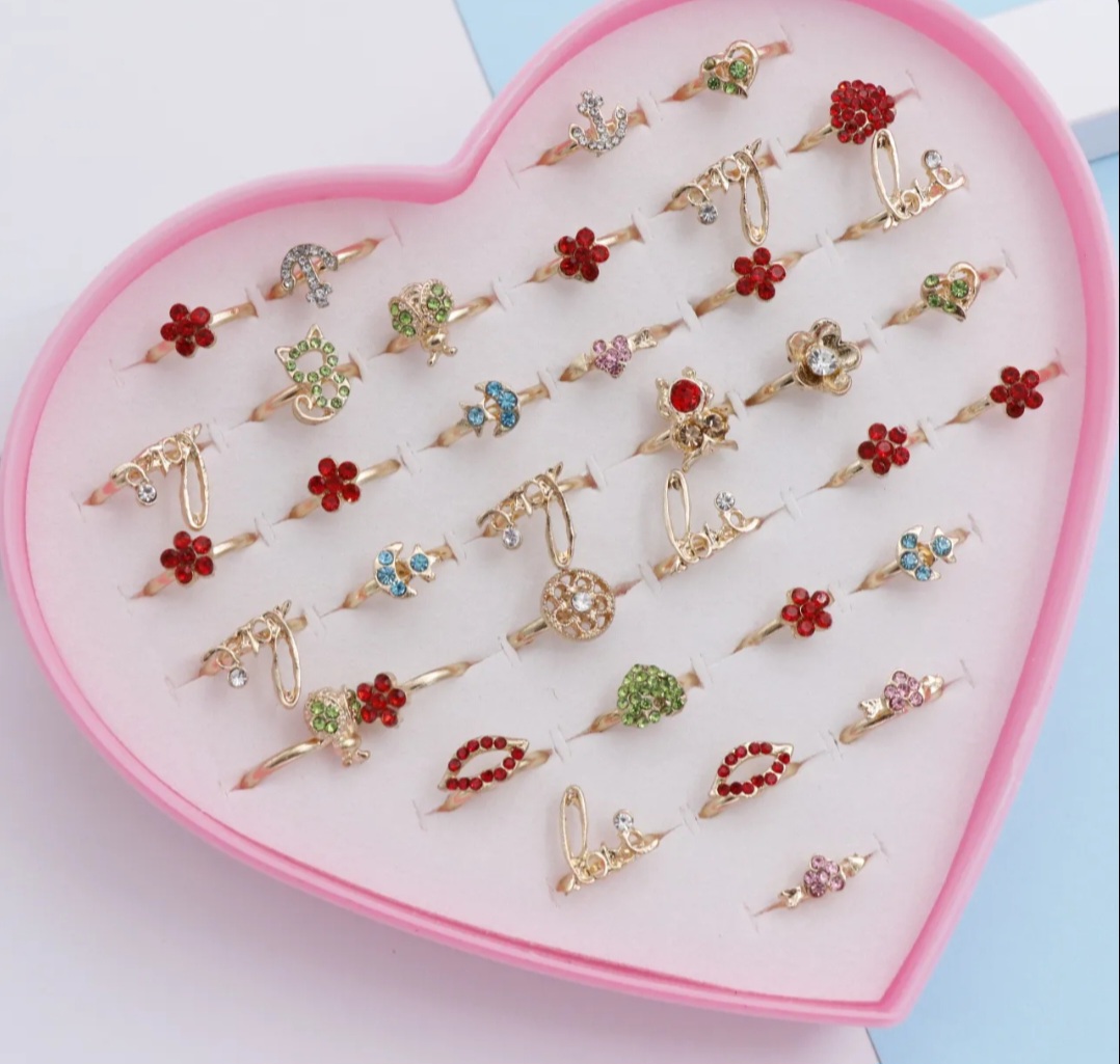 پک انگشتر طلایی دخترانه نگین دار 36 عددی 75199