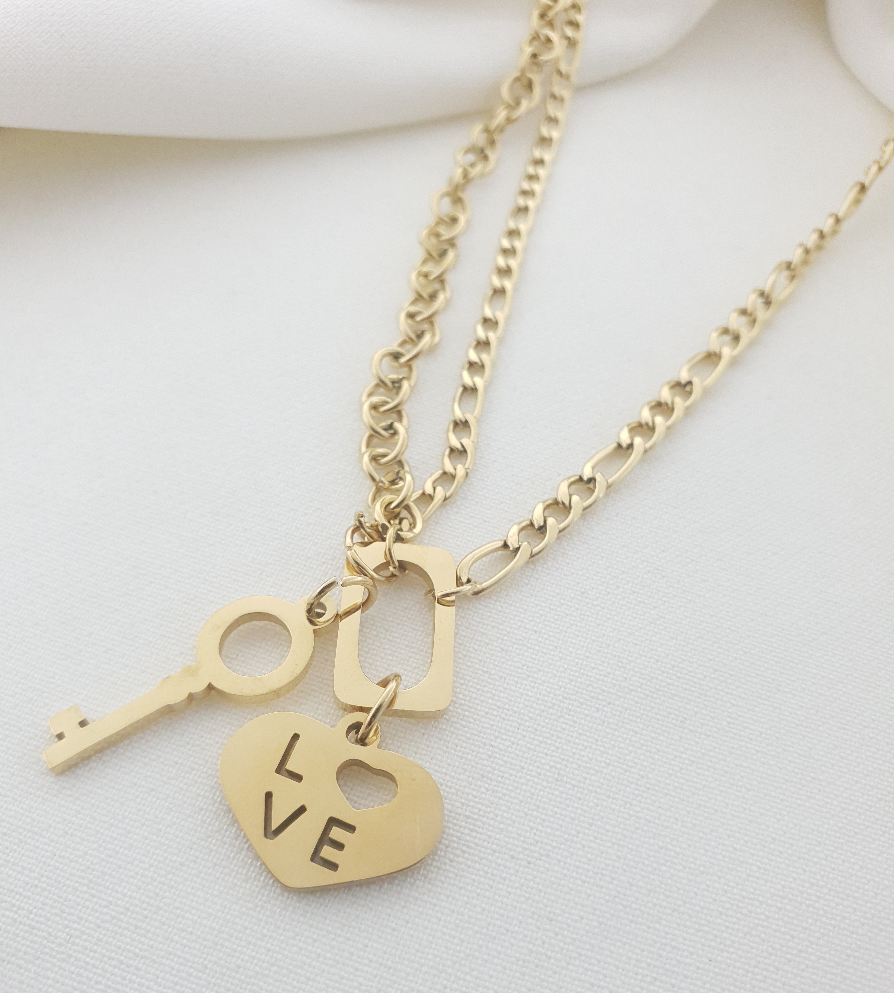 گردنبند زنانه طلایی لاو قفل و کلید ▪︎ طرح کلید و لاو ▪︎ طول حدودی ۵۰ سانت ▪︎ رنگ ثابت ▪︎ بسیار شیک و با کیفیت