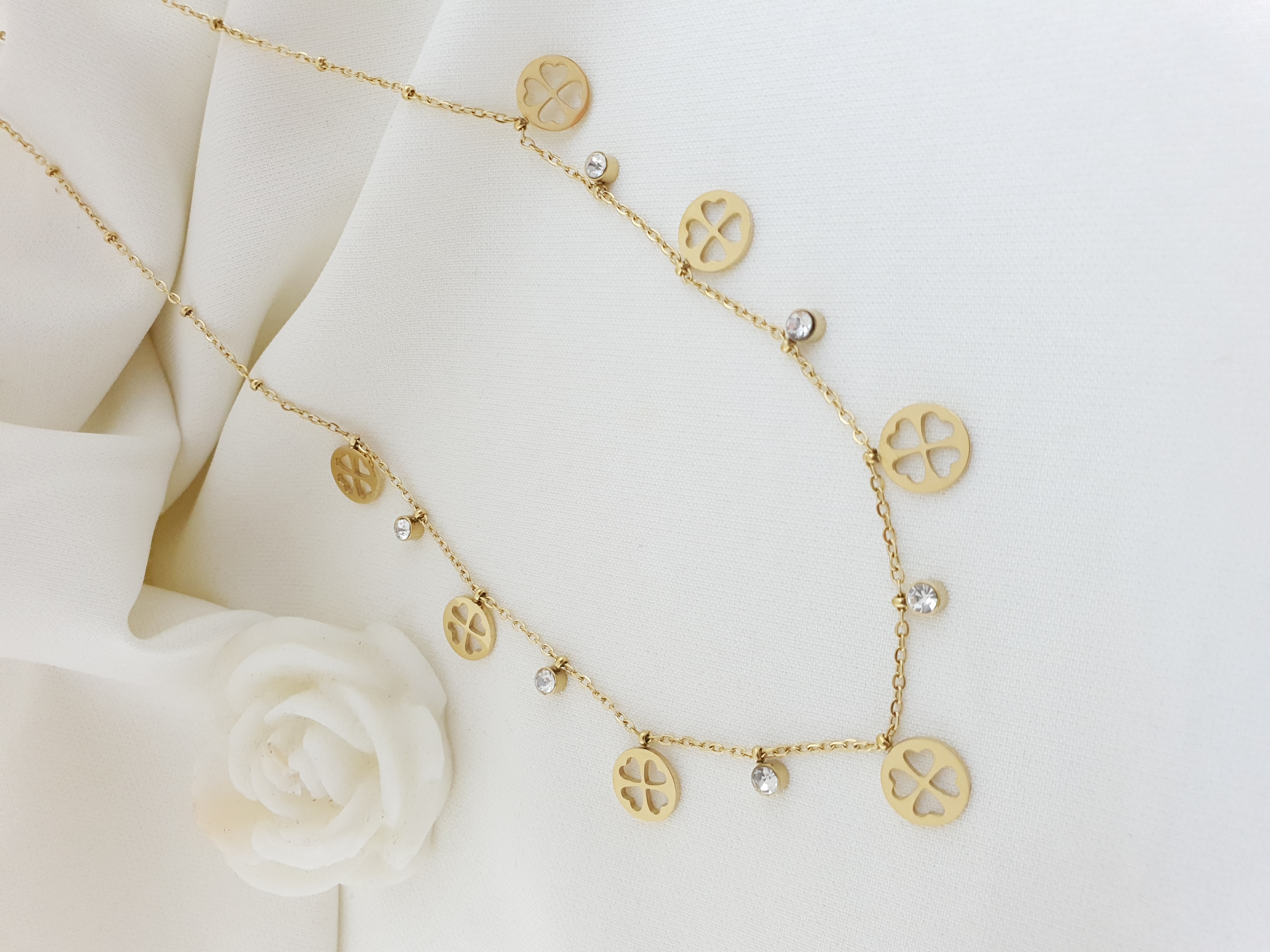 گردنبند طلایی برگی نگین دار
