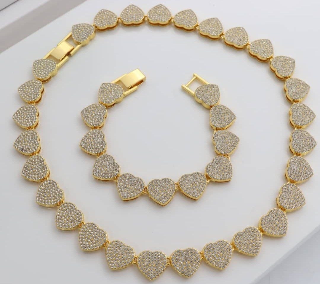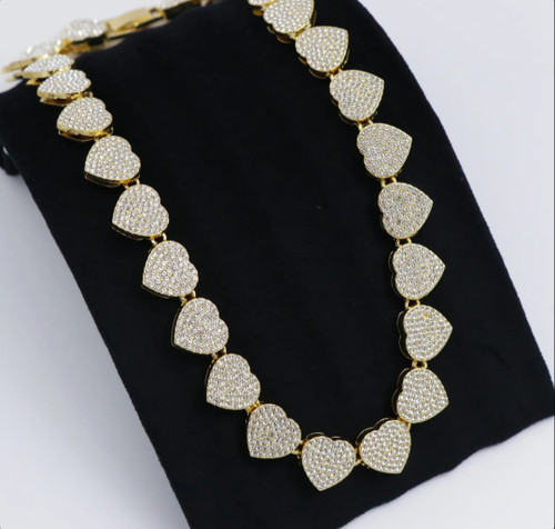 گردنبند زنانه نقره ای استیل فول نگین قلبی طلایی 73949
