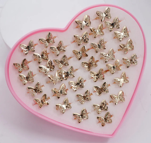 پک انگشتر دخترانه پروانه طلایی 36 عددی فری سایز 75382