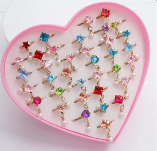 پک انگشتر دخترانه نگینی آویزدار 36 عددی فری سایز 75382
