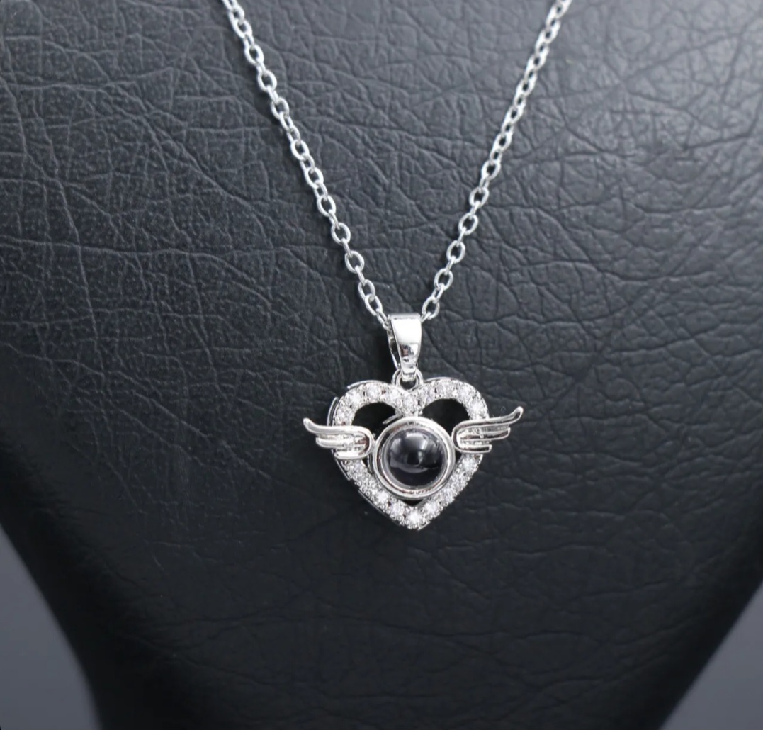 گردنبند نقره ای LOVE لاو دخترانه نگینی طرح قلب بالدار 73919