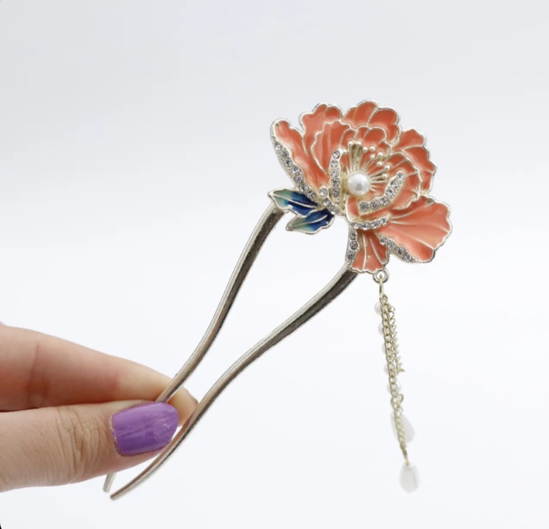 کلیپس فلزی مجلسی طرح گل صورتی ۷۵۶۳۷