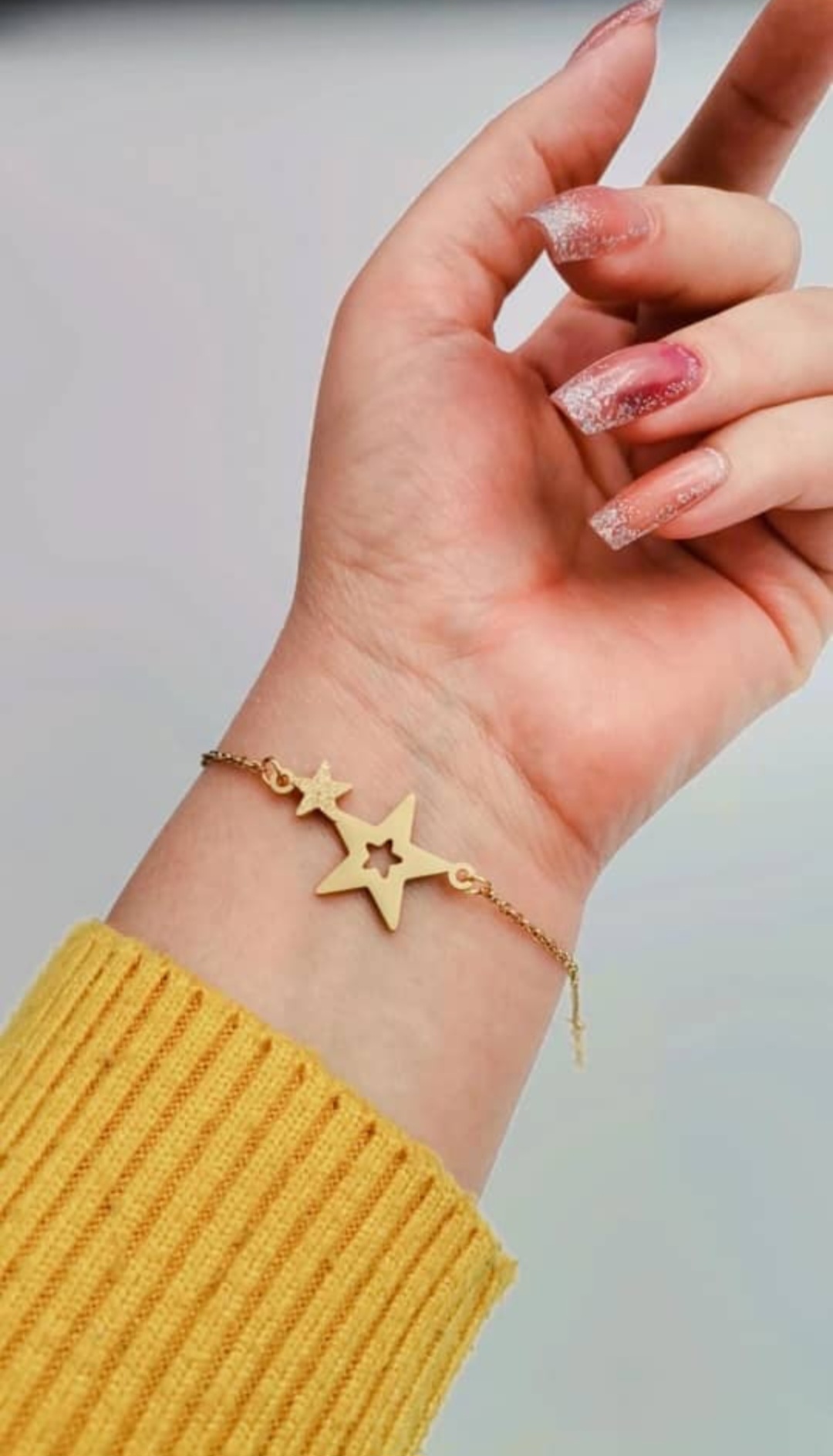 دستبند ماری طلایی زنانه وسط پلاک شاین ۷۲۹۶۵